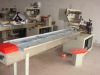 bread horizontal packaging machine-Rotary Pillow-type Packaging Machine (ALD-400D) I.FEATURES 1. Dual frequency conversion control,bag length can be set and cut in one step,saving time and film. 2.interface features easy and quick setting and operation. 3.Self failure diagnosis,clear failure display. 4.High sensitvity photoelectric eye color tracing,numerical input of cutting sealing position for estra accuracy. 5.Temperature independent PID control,more suitable for packaging different materials. 6. Positioned stop function,without sticking knife or wasing film. 7. Simple driving system,reliable working,conwenient maintenance. 8.All control is realized through software,esay for function adjusting and technical upgrade. II. APPLICATIONS Packaging various kinds of regular objects like biscuits,pies,chocolates,bread,instant noodles,mooncakes,drugs,daily appliances,industrial parts,paperboxes,plates,etc. III. SPECIFICATIONS TypeKL400DFilm widthMax.400mmBag length130 320mmBag width30 150mmProduct heightMax.65mmFilm roll diameterMax.320mmPackaging rate40 180bag/minPower220V. 50/60Hz, 2.8KWMachine size(L)4020×(W)800×(H)1450mmMachine quality900kgRemarksOptional air filling device
